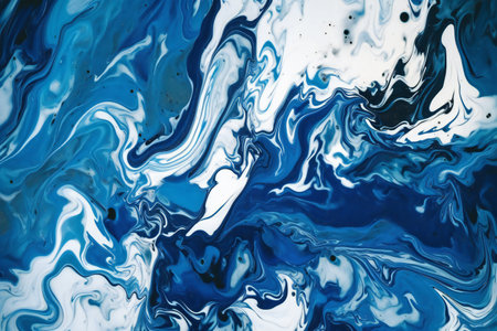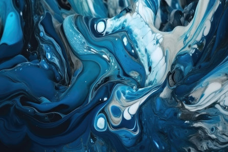 abstract background of blue and white acrylic paint in the form of waves. ai generated