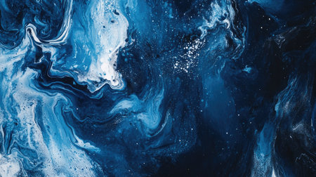 Sea deep inspired abstract marble liquid texture in silver white glitter, indigo, ultramarine and black colors. High quality illustration