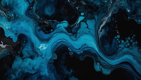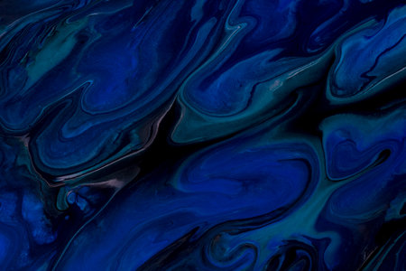Abstract fluid art background navy blue and black colors. Liquid marble. Acrylic painting on canvas with sapphire gradient. Alcohol ink backdrop with wavy pattern.