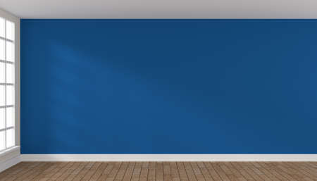 Empty room with a big window painted in classic blue, space for text, 3d rendering