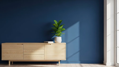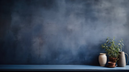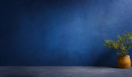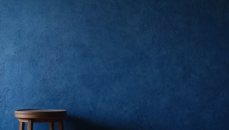 A dramatic image of an empty wall in deep indigo, with a matte finish and subtle shadows, creating a rich and sophisticated backdrop.