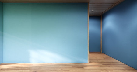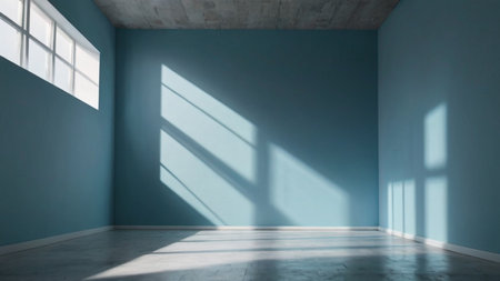 Abstract interior space with blue walls and shadows creating a calm atmosphere
