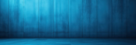 Blue cement wall and floor background with copy space for text or image