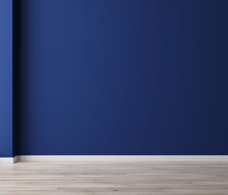 Blue empty room with blue wall and tiled floor. 3d rendering