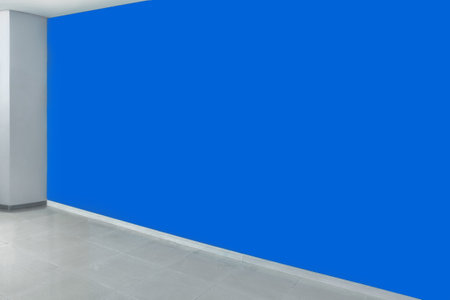 interior of modern empty room with blue wall and concrete floor, nobody inside