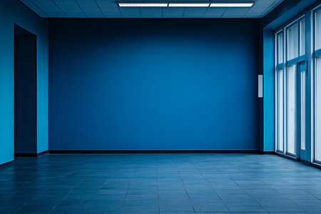 interior of empty room with blue wall and concrete floor, industrial background
