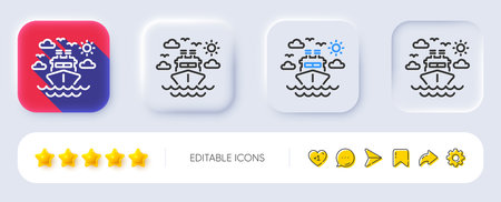 Ship travel line icon. Neumorphic, Flat shadow, 3d buttons. Trip transport sign. Holidays cruise symbol. Line ship travel icon. Social media icons. Vector