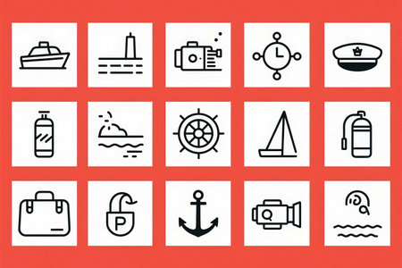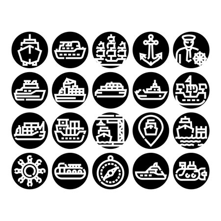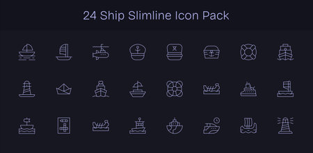 Collection of 24 Slim Line-style vector icons for Ship, designed for clarity and versatility.