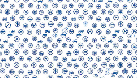 A dense, repeating pattern of small, encircled blue traffic and directional symbols on a white background. The symbols are varied and include road signs, airport symbols, and other navigational indicators