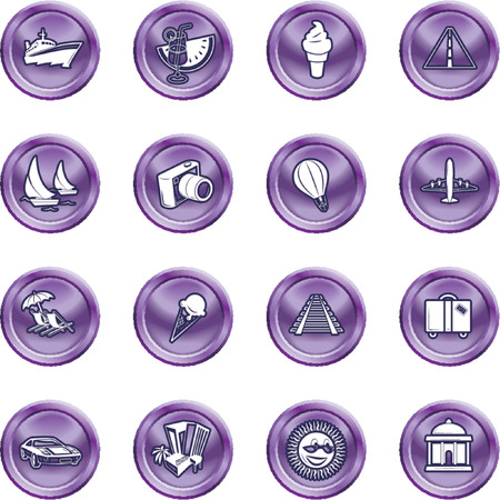 Travel and tourism Icons. A series of icons relating to vacations, travel and tourism. No meshes used.