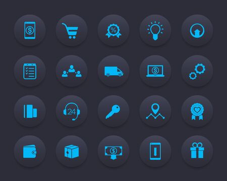 New icons collection: Set of round flat icons on the dark background. Vector illustration.