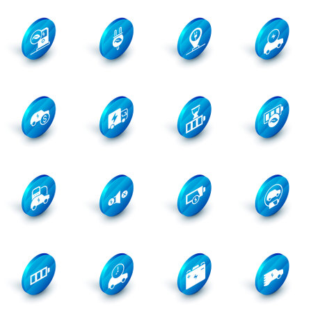 Set Electric saving plug in leaf Charging parking electric car price truck Eco nature battery and Battery charge icon. Vector.