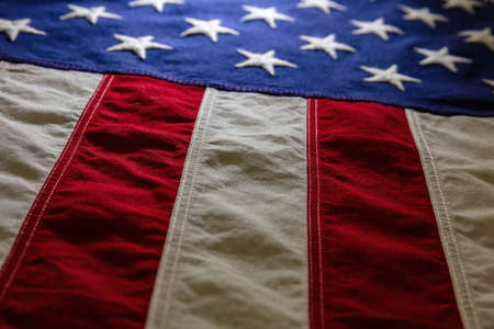 The flag of the United States of America. Old Glory. Closeup photo. Patriotic background