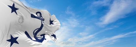 flag of United States Assistant Secretary Of The Navy waving in the wind. USA National defence. Copy space. 3d illustration.