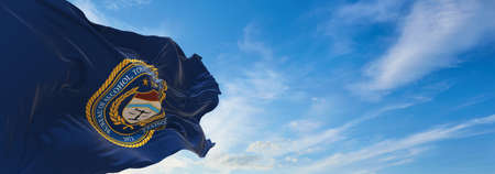Minsk, Belarus - May, 2021: flag of Bureau of Alcohol, Tobacco, Firearms and Explosives waving in the wind. USA Departments. Copy space. 3d illustration.