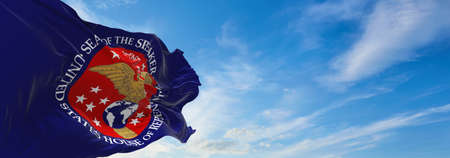 flag of United States Secretary of Defense waving in the wind. USA National defence. Copy space. 3d illustration.