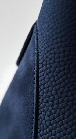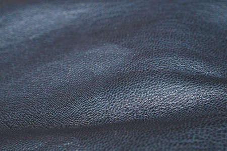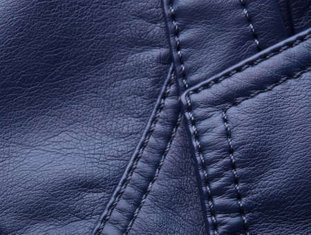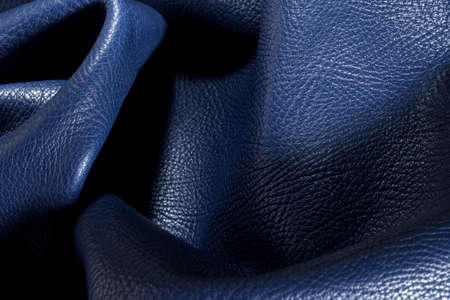 Closeup detail of blue leather texture. Dark blue leather texture background.