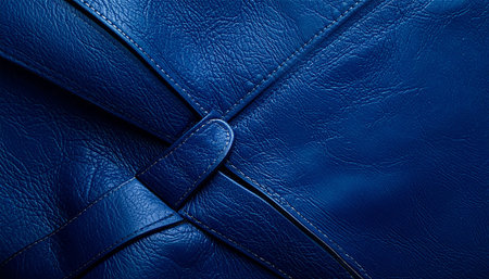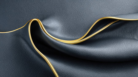 This captivating image features smooth deep blue leather elegantly draped with a striking golden trim, showcasing the premium quality and luxurious appeal perfect for fashion or decor projects.