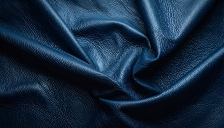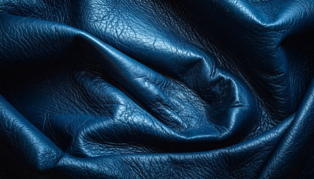 Luxurious navy blue leather texture with fine creases and soft sheen for elegant designs