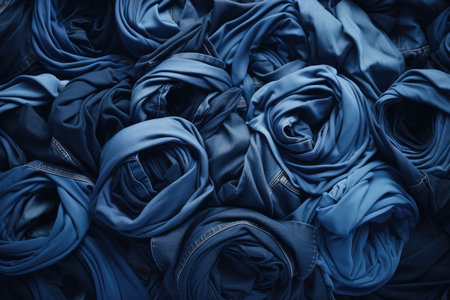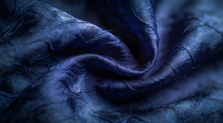 Sophisticated digital rendering evokes luxurious serenity via subtle glow effects and seamless texture gradients in a rich indigo spectrum. Ideal for upscale fashion portfolios, premium textile mockups, elegant interior concept boards, and sophisticated branding materials targeting luxury designers and marketers. Precise light diffusion and fluid form execution provi... AI-generated illustration.