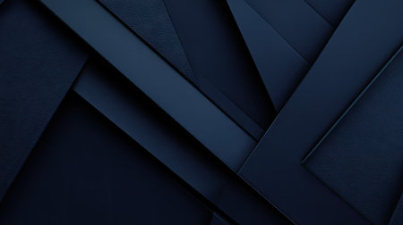 This image presents an abstract composition of overlapping geometric shapes in a deep blue hue. The artwork showcases a structured arrangement with varying angles, evoking a sense of depth and dimension. The dark, minimalist style suggests an indoor setting, suitable for various design projects and commercial applications, offering a clean, modern aesthetic.