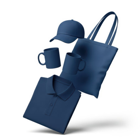 Navy blue work uniform features a blank name badge, prepared for use in various professional environments or industries, set on a white background.