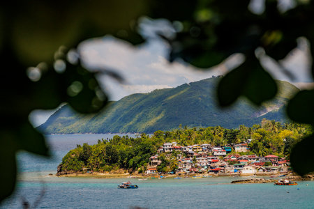 A beautiful shot of the town near the shore of a calm sea in Mentawai islands, Indonesia