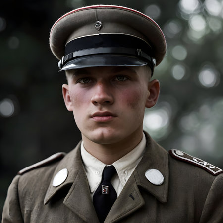 the mans portrait in a military helmet of times World War II
