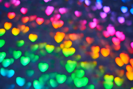 Valentine's day, blurred multicolored background colorful background with defocused lights. Multicolor blurred background. Blur, bokeh in the shape of hearts
