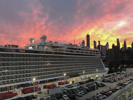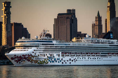 New York City/USA - May 26, 2019 Norwegian Escape Cruise Ship, Cruise to the Bahamas, The Caribbean, Canada & New England, and Bermuda from New York City Harbor with Norwegian Cruise Ship.