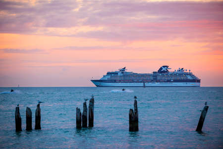 KEY WEST, FLORIDA - DECEMBER26: Cruise ship Celebrity Constellation at sunset on December 26, 2014 off coast of Key West, Florida