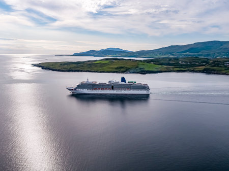 Killybegs, Ireland - July 22 2022: MS Arcadia is a cruise ship in the P and O Cruises fleet leaving after visiting Killybegs the first time