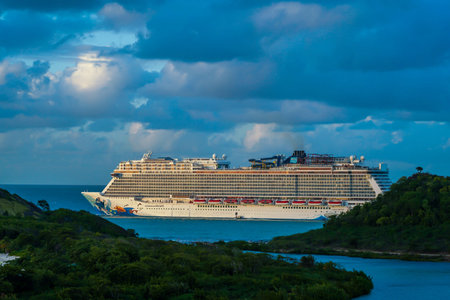 ST. JOHN - ANTIGUA AND BARBUDA: DECEMBER 30, 2021: Norwegian Escape Cruise Ship leaving the port of St. John's in Antigua and Barbuda