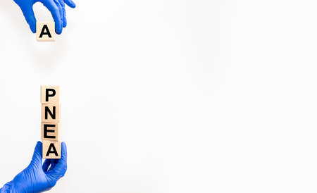 Apnea word inscription. Sleep disorder and diagnosis. Banner with copy space.