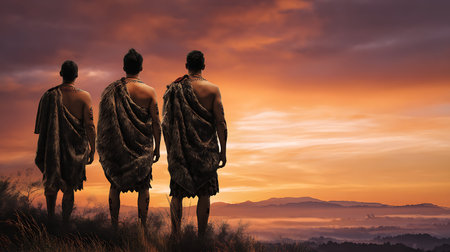 3D rendering of a group of ancient people in the desert.