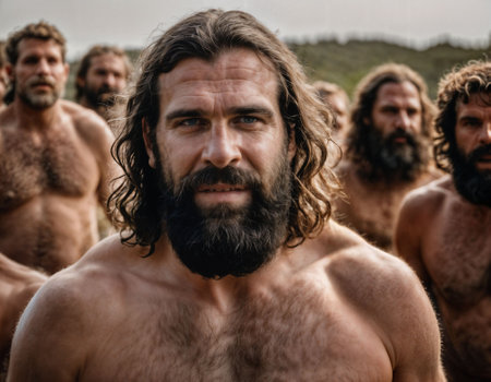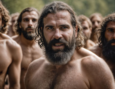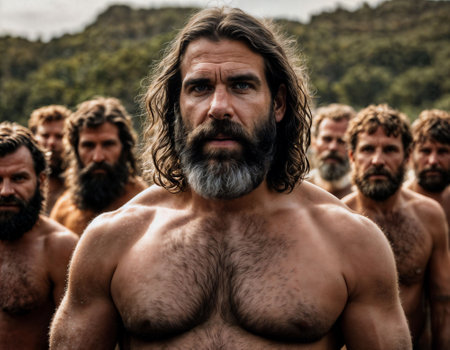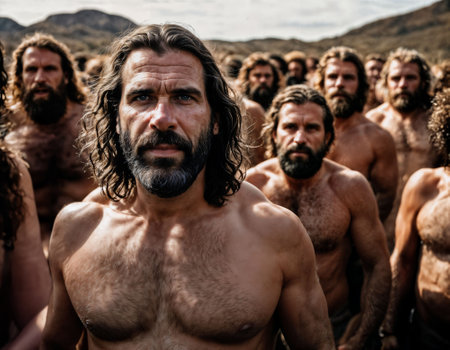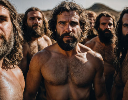 photo of group of strong caveman gang, generative AI