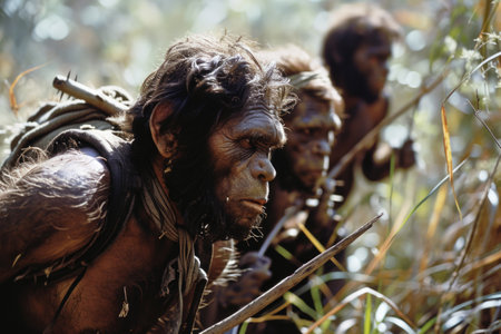 Chronicles of prehistoric life: primitive man, delving into the mysteries of early human existence, tools, culture, and survival in the ancient epochs of our evolutionary past.