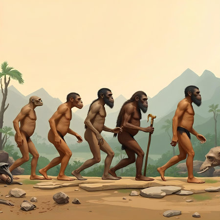 Human evolution from ape to monkey, 3D illustration of human evolution