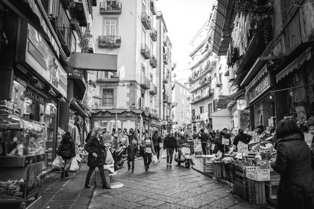 NAPLES, ITALY, JUNE 24, 2014: People are passing by through narrow streets of historical old town in italian naples.