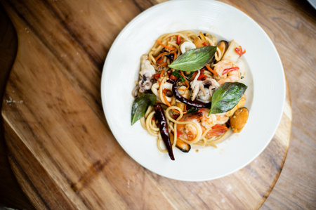 spaghetti seafood on the table