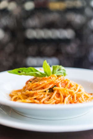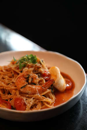 Spaghetti with seafood in red sauce