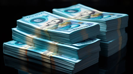 ai generated illustration collection of money stacks of 100 US dollar banknotes that make up a large portion