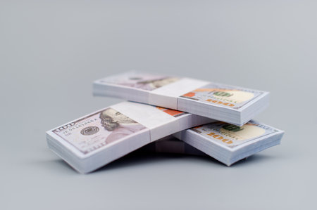 Close-up of stacked hundred-dollar bills, showing financial abundance, wealth, and investment potential.