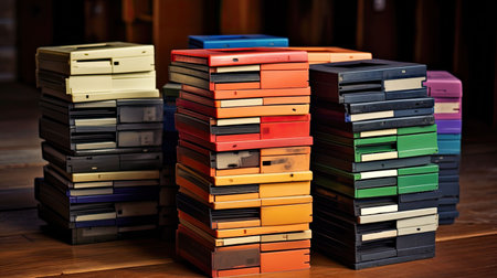 This image features an artistic arrangement of stacked digital cards on a dark surface, showcasing various graphics and vibrant colors for creative exploration.