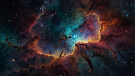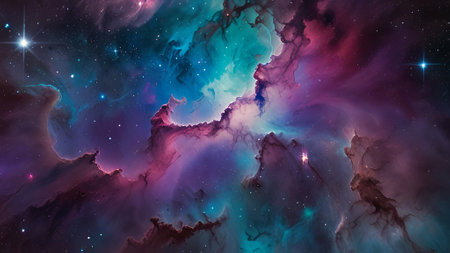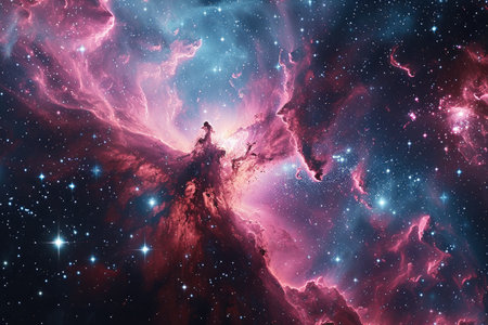 Colorful cosmic nebula in the universe shows swirling gases and bright stars in the night sky illuminating the vastness of space