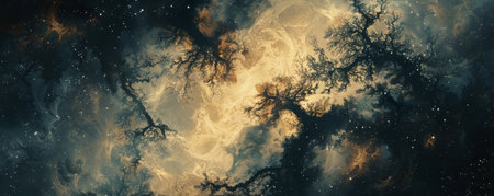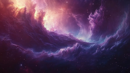 Abstract galaxy scene with swirling nebulae and bright stars, a stunning cosmic landscape of distant worlds