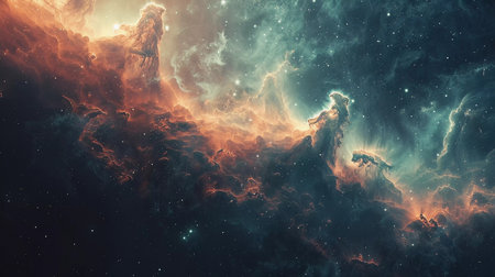 Abstract cosmic nebula, clouds of stardust. AI generated.