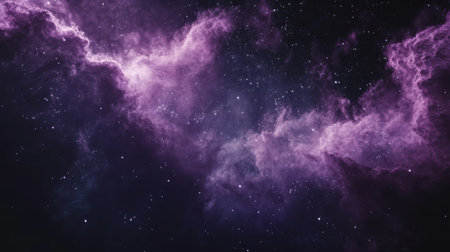 Witness a breathtaking nebula formation in this stunning illustration of deep space. A colorful and vibrant tapestry of purple, blue, and pink hues illuminate the night sky, showcasing the cosmos and its celestial wonders. This artwork depicts a galaxy filled with countless stars and cosmic dust, offering an ethereal and mysterious background. Ideal for wallpaper, artistic projects, and science education materials, this cosmic display embodies the beauty of the universe. Explore the depths of outer space and its nebula formations.