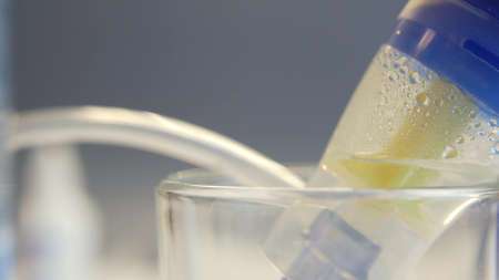 Dripping medical solution for inhalation treatment. Process of preparing compressor nebulizer before use at home