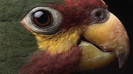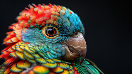 Detailed closeup of a colorful macaw parrot, showcasing its beautiful feathers and striking eyes